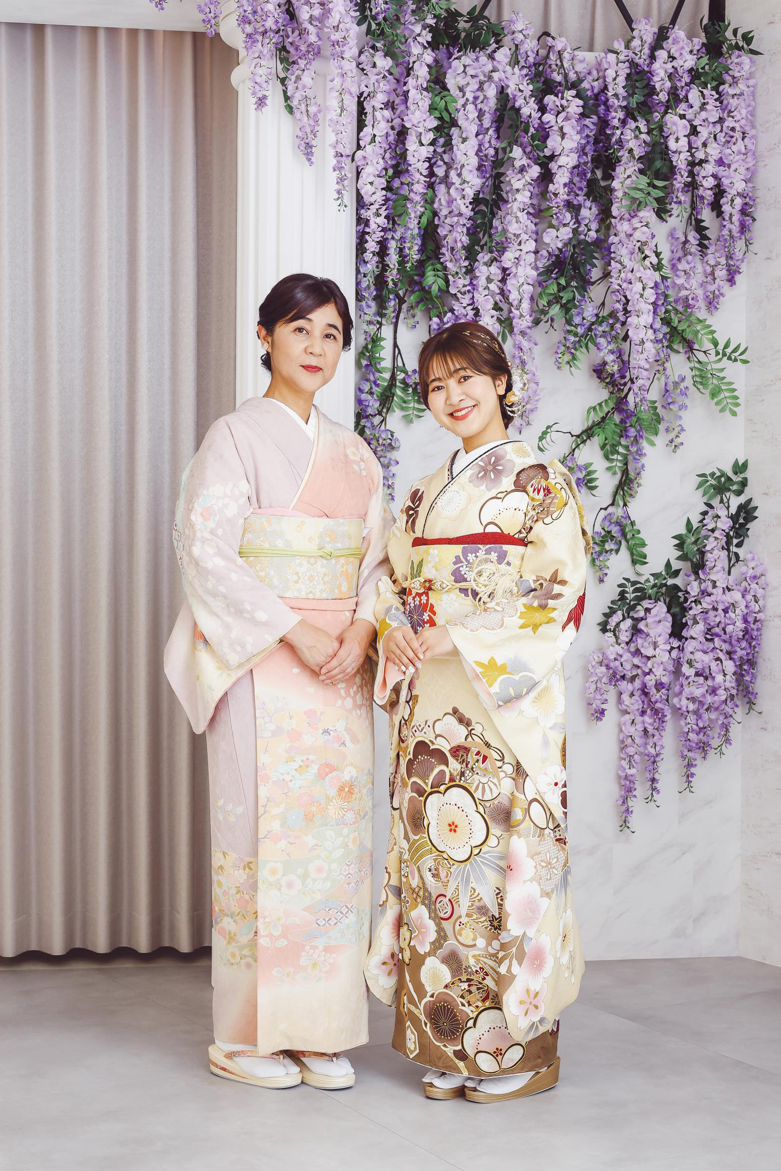 ご家族みんなでワイワイと振袖選びを楽しんだという千春さんご一家。「実際に着た姿を見ると、やっぱりこの振袖を選んで良かったなと思いました。」とお母様。前撮りにはご祖父母様も見にきてくださり、とても喜んでくださったそうです。